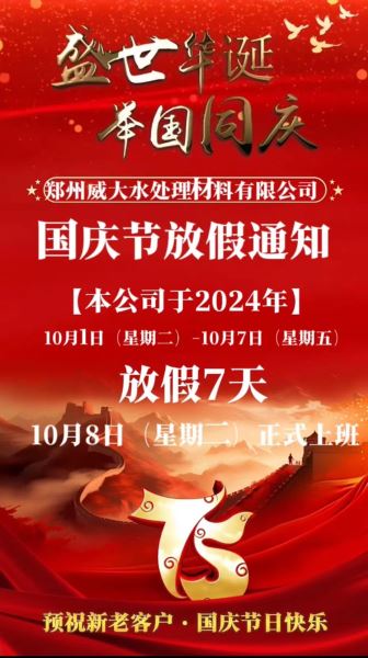 發布時間:2024-09-30 新聞來源:鄭州威大水處理材料有限公司